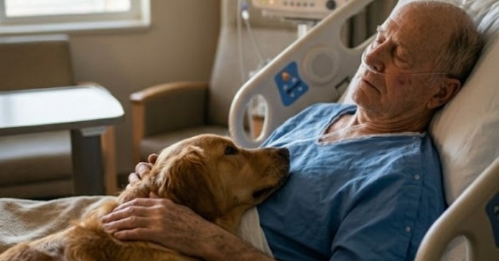 Hänen jalkojensa juurella makasi kultainen noutaja nimeltä Richard. Koira oli viettänyt viimeiset vuodet miehen rinnalla. Kun vanha mies tuotiin sairaalaan, lääkärit eivät aluksi halunneet sallia, että koira pysyisi hänen luonaan, mutta nuori lääkäri puolusti asiaa ja sanoi, että tällainen läheisyys voi joskus vaikuttaa enemmän kuin mikään lääke.