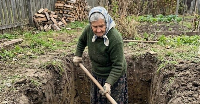 Maatilan emäntä Nadja oli jo lähes kahdeksankymmentä. Vuosien varrella hän oli heikentynyt, joten hän työskenteli valtavan kuopan parissa useita päiviä peräkkäin.