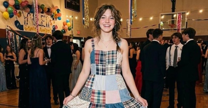 Kun juhlakautta lähestyi, Nicole tunsi vieraantuneensa keskusteluista designer-mekoista ja kalliista suunnitelmista. Etsien tapaa kunnioittaa miestä, joka oli ollut hänen koko maailmansa, hän päätti ottaa hänet symbolisesti mukaansa. Tätinsä tuella hän leikkasi ja ompeli huolellisesti isänsä vanhoja työpaitoja – sinisiä, harmaita ja haalistuneen vihreitä, kankaita, joita hän oli käyttänyt tukenaan hänen unelmiaan – ja muutti ne ainutlaatuiseksi patchwork-iltamekoksi. Se ei ollut vain mekko: se oli konkreettinen kortti hänen rakkaudestaan, valmistettu hihoista, jotka olivat halanneet häntä surullisina päivinä, ja kauluksista, jotka hän oli suoristanut ennen Nicolen ensimmäistä koulupäivää.