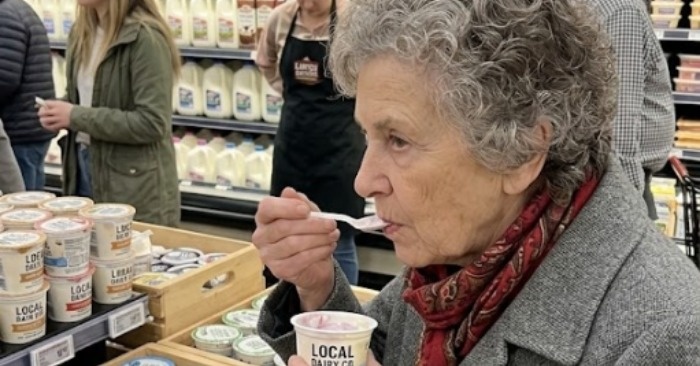 „Minä vain maistoin! Minulla on oikeus tietää, mitä ostan! Yksi jogurtti ei pilaa kauppaasi, ja olen eläkeläinen!“, hän huusi niin kovaa, että jopa kassahenkilöt nostivat päänsä.