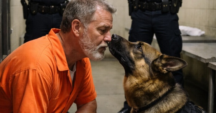 Tuossa hetkessä Ethan näytti murtuvan. Hän kumartui niin alas kuin käsiraudat sallivat koiran puoleen ja hautasi kasvonsa sen turkkiin. Hänen hartiansa alkoivat vapista, hengitys katkesi nytkähdyksittäin. Se ei ollut tavallista itkua. Se oli jotakin syvempää – kuin kaikki se, mitä hän oli kantanut sisällään vuosien ajan, olisi vihdoin purkautunut ulos.
